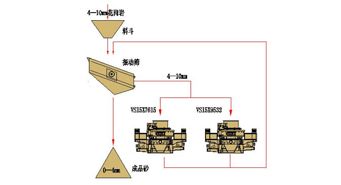 日運轉:20小時 進 料:花崗巖石粉、尺寸4mm -10mm 成 品:<=4mm的成品砂,出口
