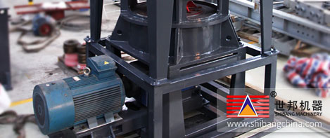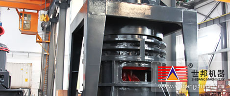 主機電(dian)動機通過(guo)減速(su)器(qi)帶動主軸及(ji)各層(ceng)轉盤(pan)旋(xuan)(xuan)轉,轉盤(pan)通過(guo)柱銷(xiao)帶動幾十個環(huan)輥在磨(mo)環(huan)滾(gun)道內(nei)(nei)滾(gun)動并旋(xuan)(xuan)轉。大(da)塊物(wu)(wu)料(liao)經錘式破碎(sui)(sui)機破碎(sui)(sui)成(cheng)(cheng)小(xiao)顆粒(li)后(hou)由提升機送入儲料(liao)倉,電(dian)磁振(zhen)動給料(liao)機將(jiang)物(wu)(wu)料(liao)均(jun)勻的(de)(de)(de)(de)送到上轉盤(pan)的(de)(de)(de)(de)中部,物(wu)(wu)料(liao)在離(li)心力的(de)(de)(de)(de)作用(yong)下(xia)(xia)散向(xiang)圓周邊,并落(luo)(luo)入磨(mo)環(huan)的(de)(de)(de)(de)滾(gun)道內(nei)(nei)被環(huan)輥沖壓、滾(gun)碾(nian)、研磨(mo)而粉(fen)(fen)碎(sui)(sui),物(wu)(wu)料(liao)經層(ceng)粉(fen)(fen)碎(sui)(sui)后(hou)落(luo)(luo)入層(ceng)及(ji)第(di)(di)三層(ceng),高壓離(li)心風(feng)機的(de)(de)(de)(de)抽吸作用(yong)將(jiang)外部空(kong)氣吸入機內(nei)(nei),并經過(guo)第(di)(di)三層(ceng)粉(fen)(fen)碎(sui)(sui)后(hou)的(de)(de)(de)(de)粗粉(fen)(fen)帶入選粉(fen)(fen)機內(nei)(nei)。選粉(fen)(fen)機內(nei)(nei)旋(xuan)(xuan)轉的(de)(de)(de)(de)渦輪使粗顆粒(li)物(wu)(wu)料(liao)回落(luo)(luo)重(zhong)磨(mo),細(xi)粉(fen)(fen)則隨氣流進入旋(xuan)(xuan)風(feng)集粉(fen)(fen)器(qi)并由其下(xia)(xia)部的(de)(de)(de)(de)卸料(liao)閥(fa)排出即為成(cheng)(cheng)品,而帶有少(shao)量細(xi)粉(fen)(fen)塵的(de)(de)(de)(de)氣流則經過(guo)脈沖除塵器(qi)凈化(hua)后(hou)通過(guo)風(feng)機和(he)消(xiao)聲(sheng)器(qi)排出。